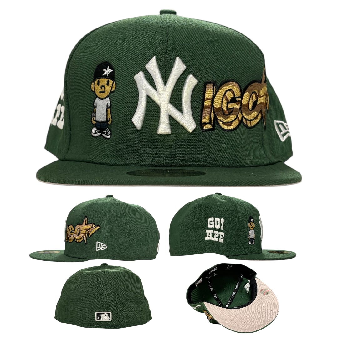 Remade ReUps FITTED CAP "NIGO" PREMIUM GLOW IN THE DARK THREAD Green UV Grey