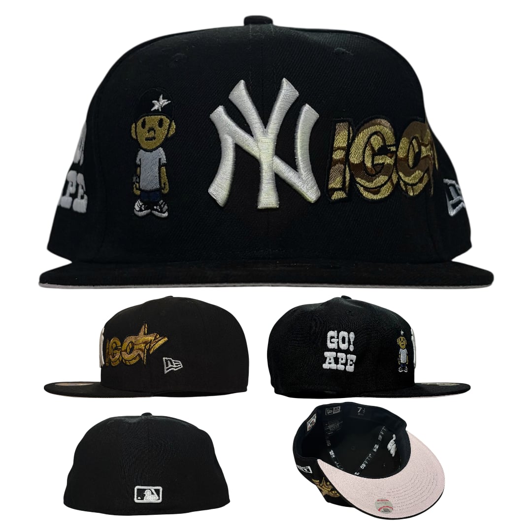 Remade ReUps FITTED CAP "NIGO" PREMIUM GLOW IN THE DARK THREAD Black UV Grey