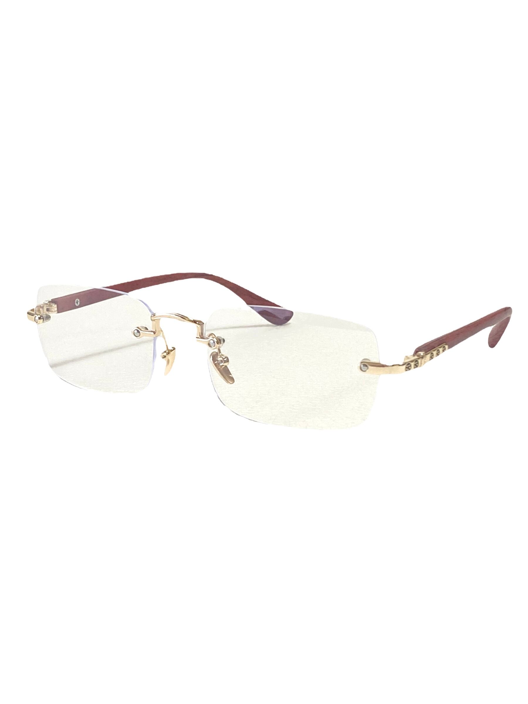 MOOD SELECTION BLUE LIGHT BLOCKING DIAMOND CUT MEDIUM WOOD SUNGLASSES - CLEAR