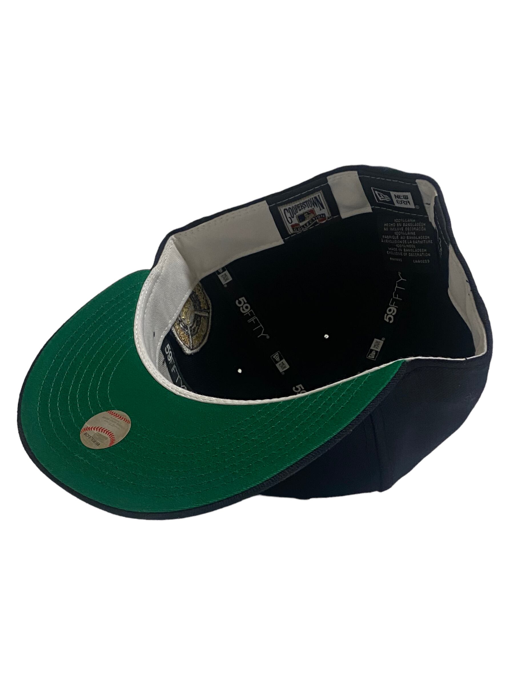 ネイビーボディに白のインナーテープ、つば裏グリーン。ヤンキースロゴもVintageロゴとなります。